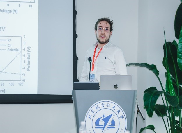 Soufiane Abdelghani-idrissi 副教授介绍了其在离子二极管及其衍生物的基本原理和应用方面的研究进展。北航beat365唯一官方网站衡利苹教授介绍了仿生超浸润界面上的电致驱动微流体,通过设计一种超透明的光热释电超润滑的平台,可实现高粘液体的精准分离,展示了其在液体分离领域的巨大应用潜力。