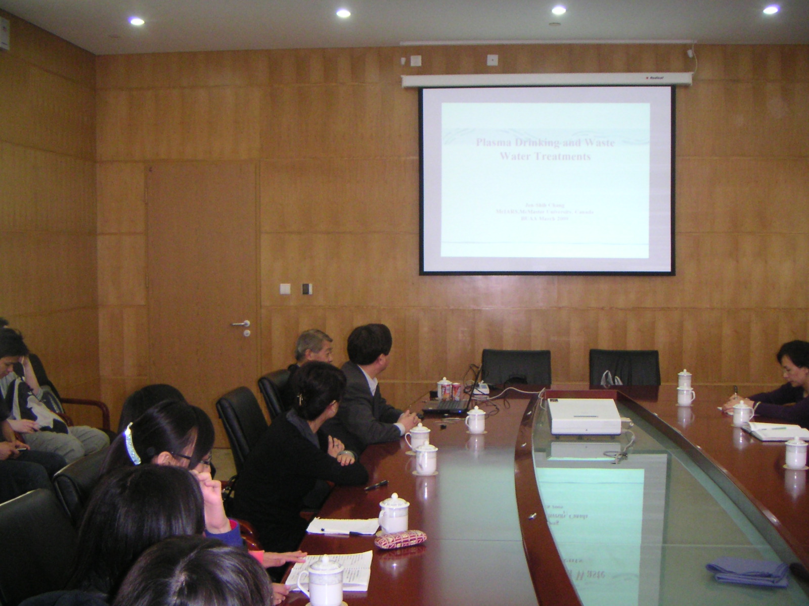 会上,Chang教授主要介绍了等离子体在饮用水和污水处理中的应用(Plasma application in drinking water /waste water treatments)。Chang教授通过生动的图片和大量实验数据图表,给大家讲述了当前国际上比较先进的污水处理方法及应用情况,使大家开阔了视野,丰富了专业知识。