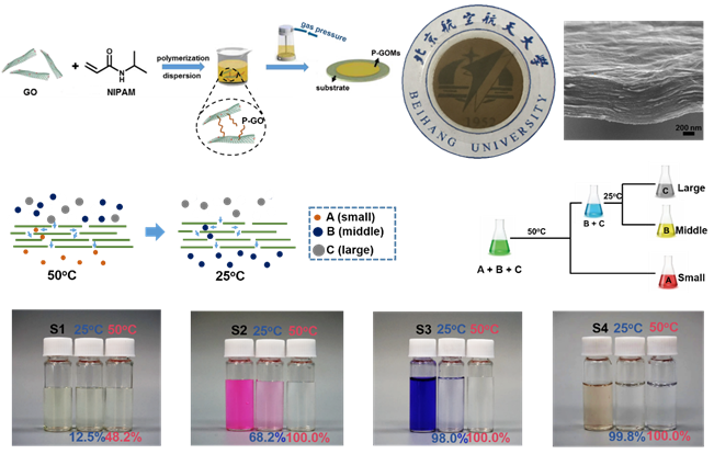 12月8日,Nature子刊《NatureCommunications》在线刊登了beat365唯一官方网站beat365唯一官方网站赵勇教授、王女副教授及其合作者的最新研究成果“仿生温度响应石墨烯膜用于门控及分子分离”(英译:Bioinspiredgraphene membrane with temperature tunable channels for water gating andmolecular separation),beat365beat365唯一官方网站赵勇教授与王女副教授为共同通讯作者,2015级博士生刘敬崇为第一作者,北航为第一通讯单位。