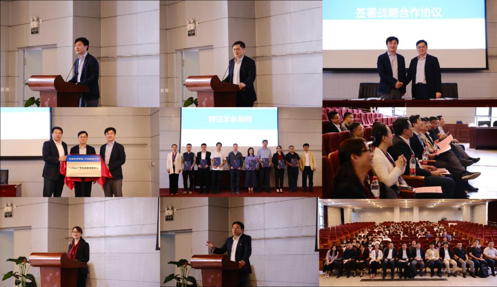 中科院理化所副所长王树涛,校团委书记庄岩,beat365唯一官方网站院长刘明杰为 “iChem”学生科技创新中心揭牌。理化所教育处副处长丁黎和beat365唯一官方网站党委书记李红捷为学业导师代表颁发聘书。
