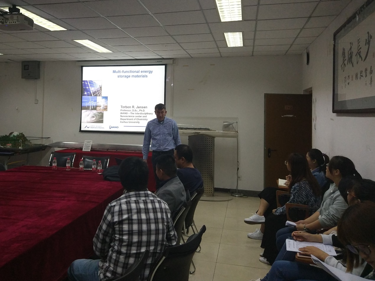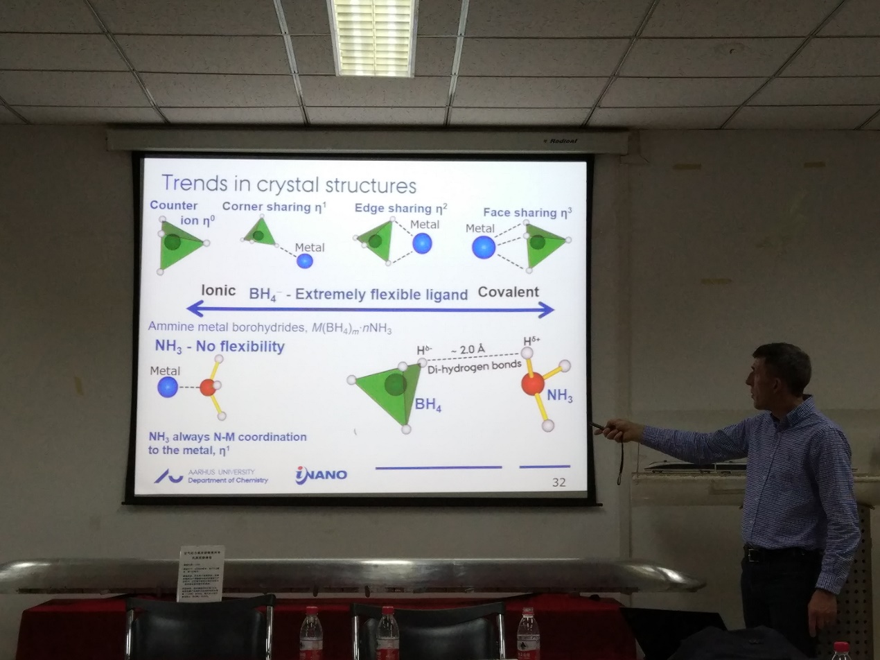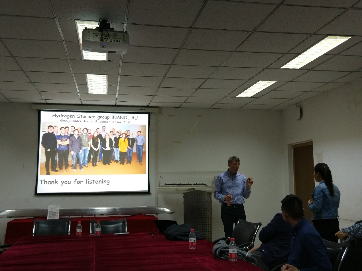 本次报告由beat365教师张瑜研究员主持,吸引了全院众多师生到场聆听。TorbenR. Jensen教授的报告题目为“Hydrides for Multi-FunctionalEnergy Storage Applications”。Torben教授首先对奥尔胡斯大学科学与技术学院的整体状况进行了简短的介绍,使同学们对该校有了一个全面的认识,随后对自己在多功能储能材料的科研工作进行了详细的介绍。他先简单介绍了氢能源,被认为是一个潜在的非常有趣的能量载体,它可以促进可再生能源分布不均的有效利用。此外,氢具有非常有趣的化学性质,并且与周期表中的大多数元素以及各种不同类型的键形成化合物。金属氢化物最近变得非常有趣,是新型的电池和储氢能源材料。随后,他讲述了他们研究小组在新的含氢材料的最新成果。主要包括新型金属硼氢化合物的合成和其储氢性质和离子导体的研究;通过形成共晶熔融体系调整材料性能;以及原位粉末X射线衍射研究氢的释放和吸收反应。