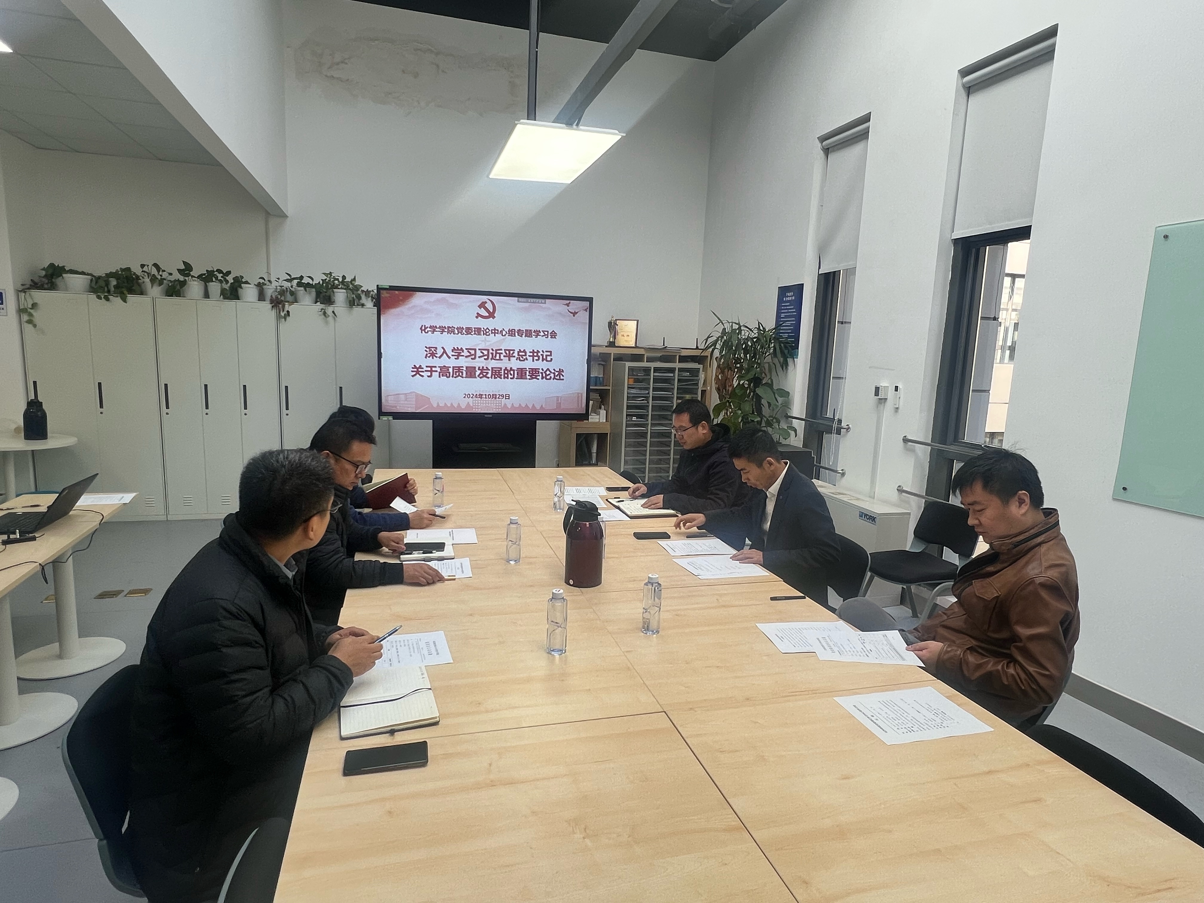 10月29日上午,beat365唯一官方网站党委理论学习中心组召开学习会,围绕“深入学习习近平总书记关于高质量发展的重要论述,深刻认识加快实现是推动高质量发展的必由之路,心怀“国之大者”,强化有组织的科研,完善质量管理体系,全面提升服务国家战略和经济社会发展能力”展开学习。党委书记刘克松主持会议,学院党委理论学习中心组成员、教职工党支部书记参加会议。