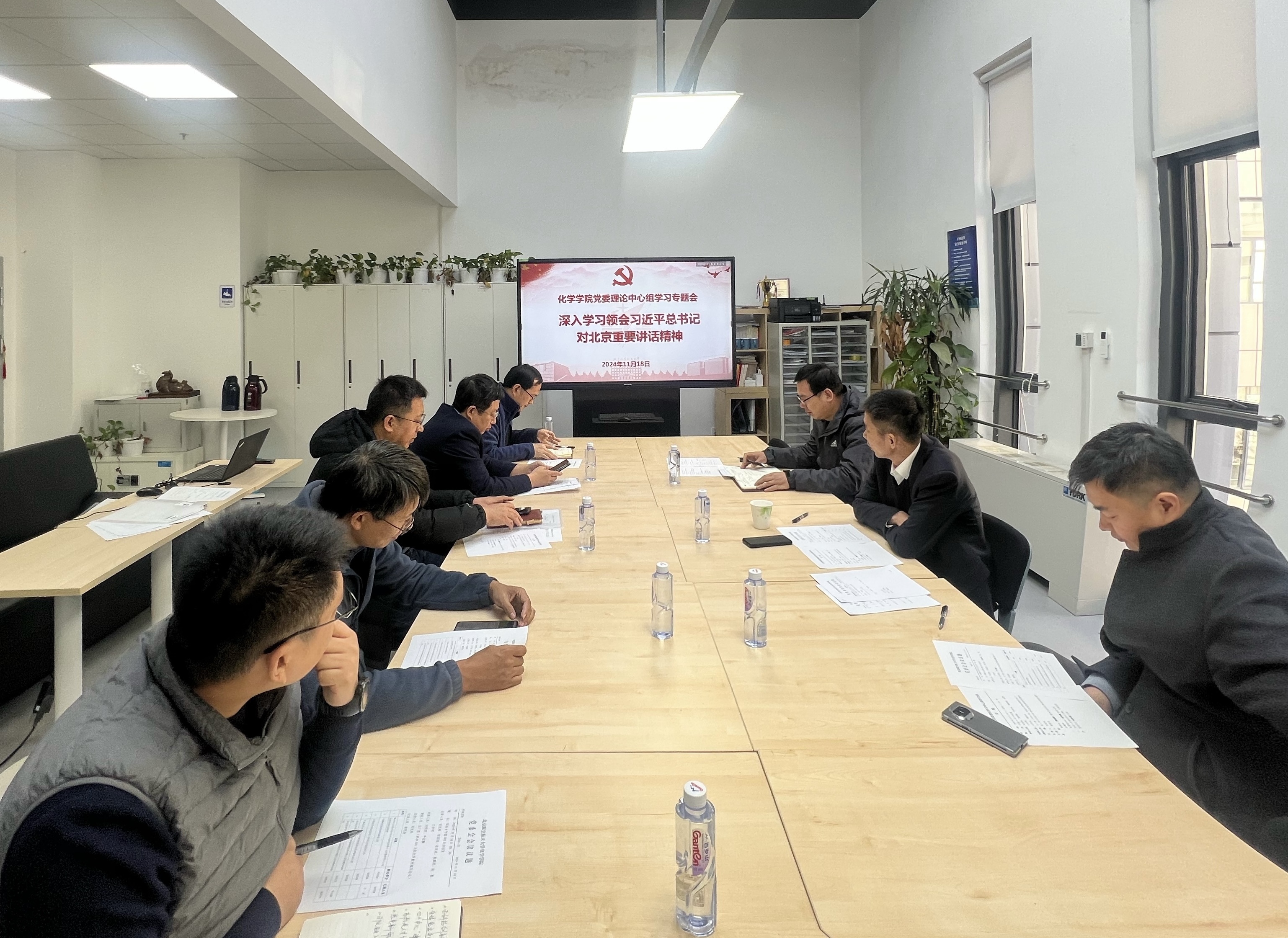 2024年11月18日上午,beat365唯一官方网站党委理论学习中心组(扩大)召开学习会,围绕“深入学习领会习近平总书记对北京重要讲话精神,深刻理解北京‘四个中心’功能定位,一体推进教育、科技、人才工作,思考谋划加快建设中国特色、世界一流大学新举措,在新征程上展现首都高校新作为”展开学习。党委书记刘克松主持会议,学院党委理论学习中心组成员、教职工党支部书记参加会议。