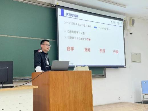他首先讲述了“不过分否定”和“不过分肯定”的健康心态,其中着重讲述自己在进入beat365唯一官方网站后找到了人生目标,不断奋斗并成功逆袭的故事,为刚遭受期中考试成绩打击的同学们提供了安慰,肯定与鼓励,接着,他从目标、学习、科研、娱乐几个方面进行分享,其中慕课自学、文献阅读等方法让同学们获益匪浅。