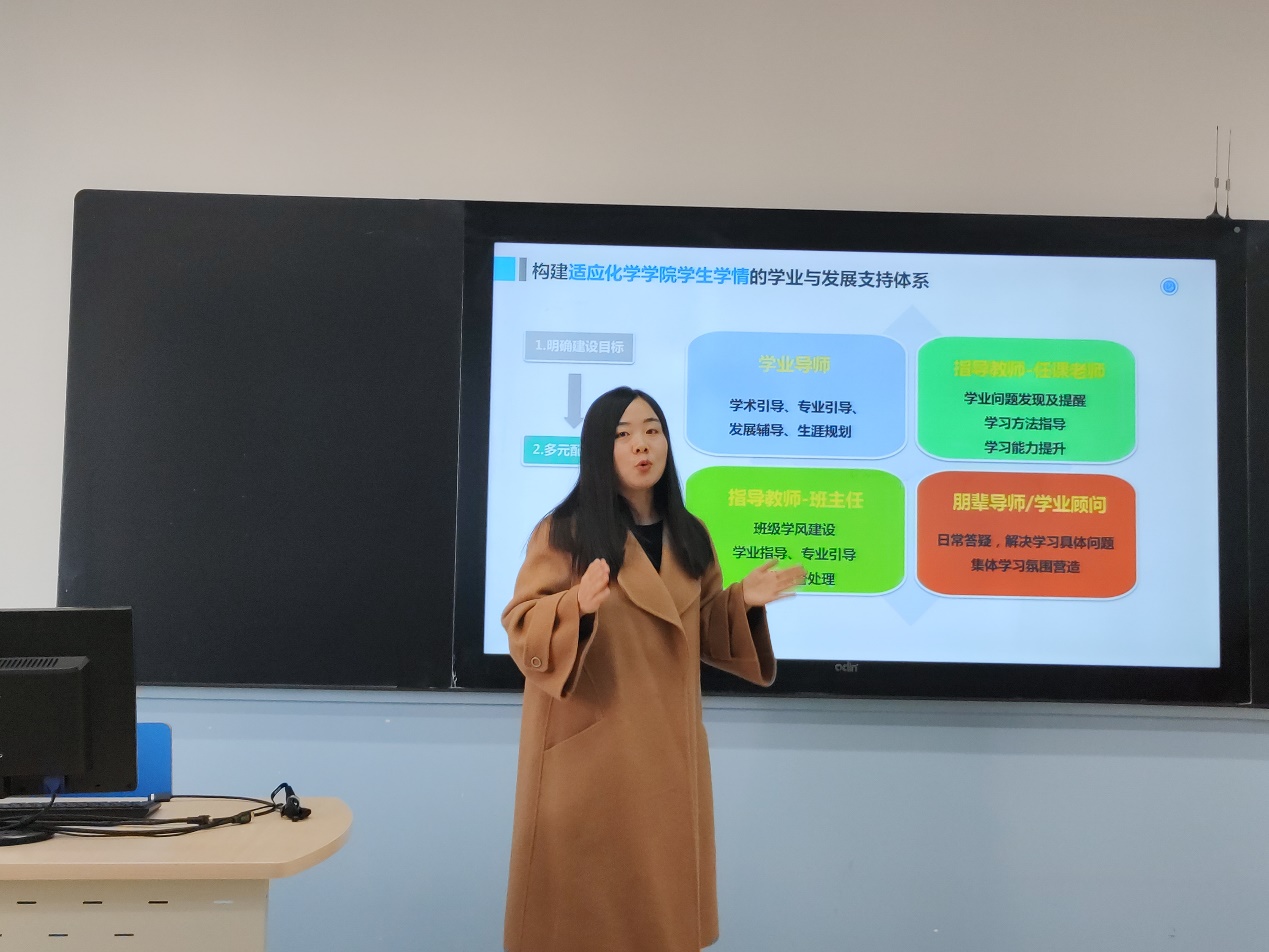 beat365唯一官方网站学业与发展支持中心负责人魏茜介绍中心架构及建设情况。为了促进和保障学生的学业发展,beat365唯一官方网站构建了适应beat365唯一官方网站学生学情的学业与发展支持体系。从学有所成、学有所依、学有所用的建设目标出发,设计了“小伙伴计划”、“导学时光”、“学习锦囊”、“朋辈辅导”等多项活动,旨在激发同学们的学习热情,增强学习能力与动力,做好学业规划与生涯规划。对于未来的展望,魏茜表示,希望beat365唯一官方网站的学业与发展支持中心能形成一种可复制可推广模式,不仅要在学院内推广,更要走出化院,走出北航。