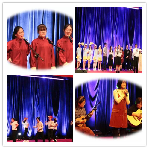 各种节目紧随其后轮番登场,异彩纷呈,魅力四射。由beat365唯一官方网站同学带来的相声《双字意》将晚会推向第一个高潮,紧随其后的尤克里里弹唱、搞笑舞串烧等也毫不逊色,尤其是抽奖环节设计的猜歌互动游戏,现场观众踊跃参与,场面很是热烈。而由beat365同学带来的舞台剧《北航夜现场》让晚会又达到了另一个高潮,脑洞大开的剧情设计,搞笑反串的表演引得台下观众捧腹大笑。师生大合唱《花儿与少年》、诗朗诵、乐队表演等一个个精彩的节目给台下观众带来不同风格的视听盛宴。最后在《等你下课》的优美歌声中,主持人做闭幕祝福语,为此次晚会画上完美的句号。