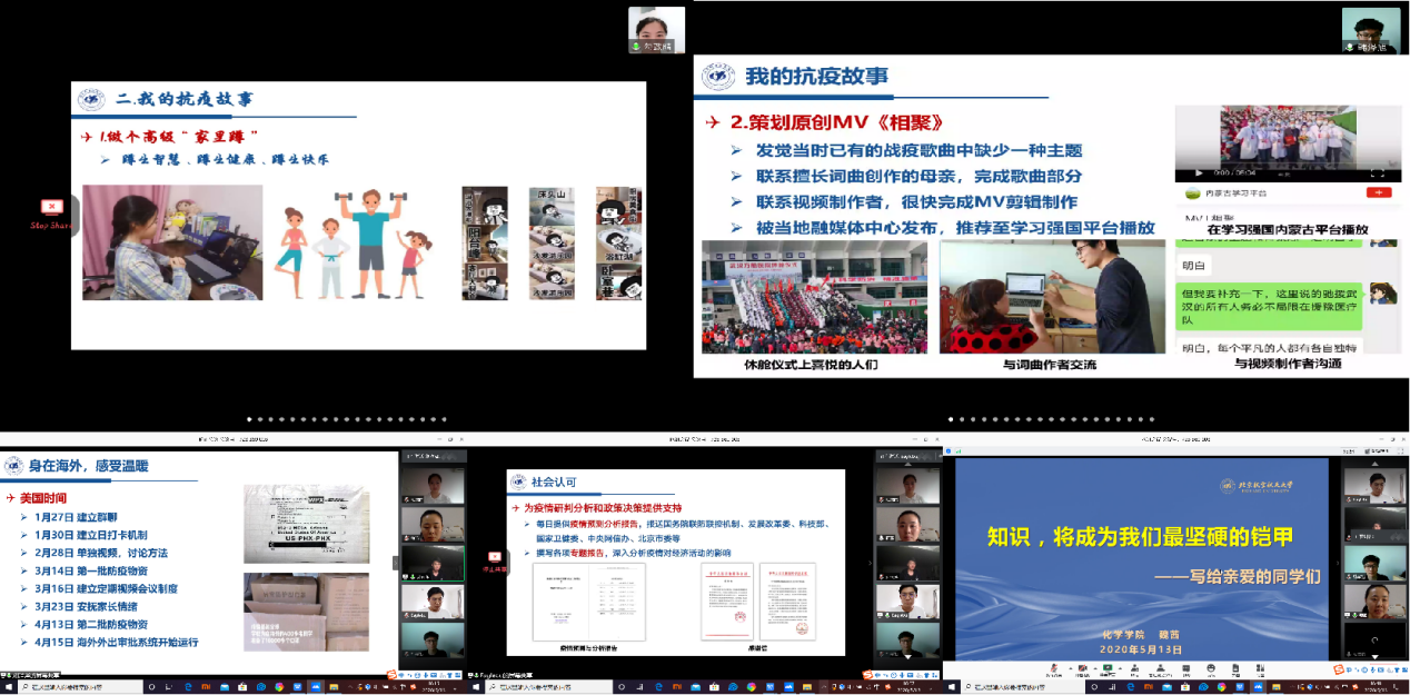 首先,在居家学习的这段日子里,我们面对着来源广泛、五花八门的疫情相关信息,要依靠自己的科学知识和理性思考冷静客观地进行辨识,做好自我防护。其次,我们可以宣传防疫知识,用自己的专业知识引导与服务他人,就像beat365唯一官方网站举办的新冠疫情防控创新大赛中涌现出许多优秀的科普宣传、科研创新作品一样,我们要让自己丰富的想法转化为行动。再次,知识还是我们应对谣言与攻击的有力武器,让我们能够形成有理有据的观点来应对质疑。最后,魏老师号召我们全体同学要在做好健康防护的同时继续保持认真学习的状态,打牢专业基础,也可以利用这段时间认真思考自己的发展方向,做好未来规划。当我们回到洒满阳光的北航,将身披着更厚实的知识铠甲坚毅前行。