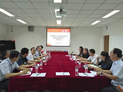 7月11日下午,由纪委书记何新洲,纪委副书记、纪委办公室主任、监察处处长武立勋,纪检员方滨艳,纪检员何述义,党风廉政监督员王健和谭立组成的检查组对beat365全面从严治党暨党风廉政建设工作进行了检查。beat365党委书记李红捷,常务副院长郭林,本科教学副院长朱英,化学系主任高秋明,党委委员杨青林及学院教工党支部书记、青年教师代表等参加了汇报会。